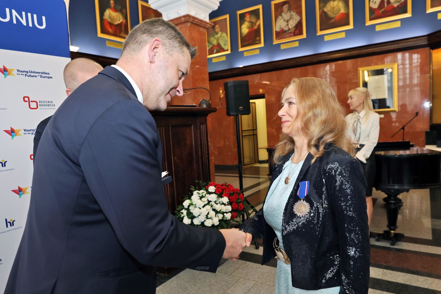 Odznaczenia – wspólnie z prorektorem ds. kadrowych i polityki finansowej dr. hab. Radosławem Sojakiem – wręczyli wicewojewoda kujawsko-pomorski Michał Koniuch i kujawsko-pomorska wicekurator oświaty Beata Sikorska.